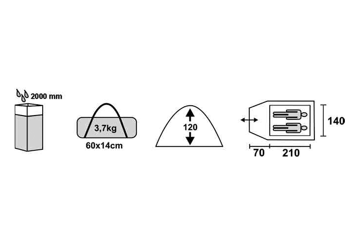 | Размеры внутренней палатки (ДхШхВ) | 210x140x120 см |