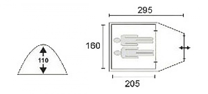 | Размеры внешней палатки (ДхШхВ) | 295x160x110 см |