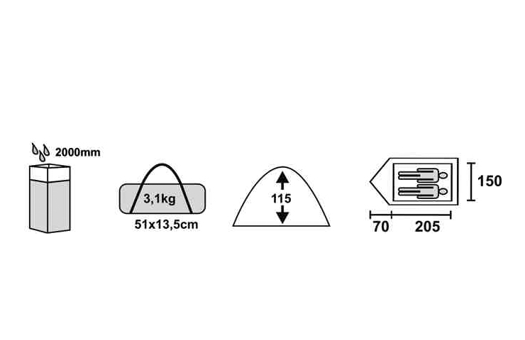 | Размеры внутренней палатки (ДхШхВ) | 210x150x115 см |