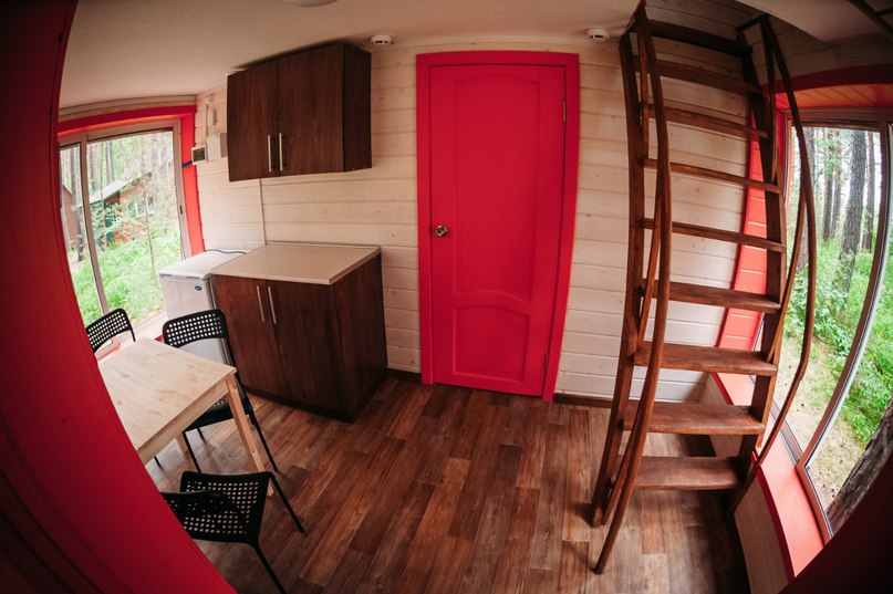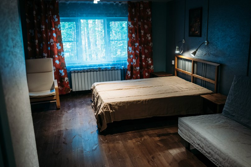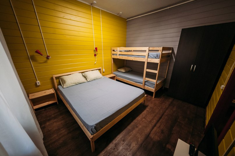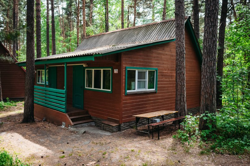 - Домики без удобств: Спортсменов до 2 человек, Рыбака до 5 человек, Дачный двухэтажный до 6 человек, У Ели до 4 человек, У горы до 4 человек, Берлога до 4 человек В домах односпальные кровати, шкафы, стулья, стол. В доме Рыбака есть кухонная зона, пять односпальных кроватей, холодильник.