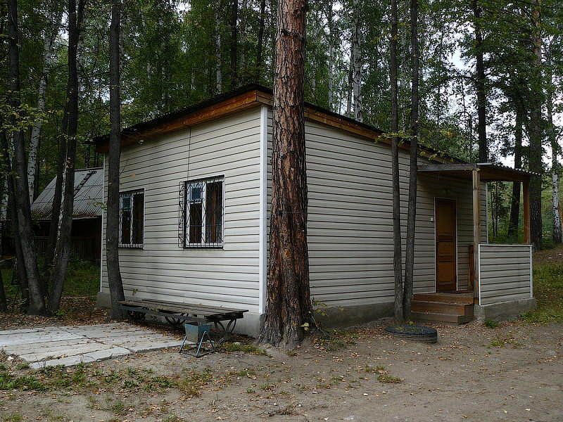 Семейный домик на три комнаты рассчитан на одновременное проживание шестерых отдыхающих. Он является отдельностоящим одноэтажным коттеджем из дерева, внутренней отделкой которого является евровагонка. Прихожая с обеденной зоной (кухни нет) оборудована электрочайником, холодильником, кухонным шкафом и телевизором. Есть три спальные комнаты, в первой из которых есть двуспальная кровать, вторая оснащена выдвижным диваном, третья — двумя односпальными кроватями. Душ, умывальник и туалет есть. Горячая и холодная вода есть.