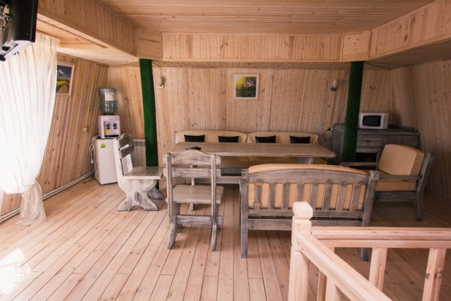 Каждый из таких домов имеет санузел, душевую кабину, жидкокристаллический телевизор, холодильник и электрический чайник. На первом этаже находится гостиная, в которой стоит раскладной диван и здесь же расположен санузел. На втором этаже два раскладных дивана в одной комнате и раковина умывальник.