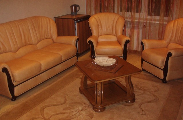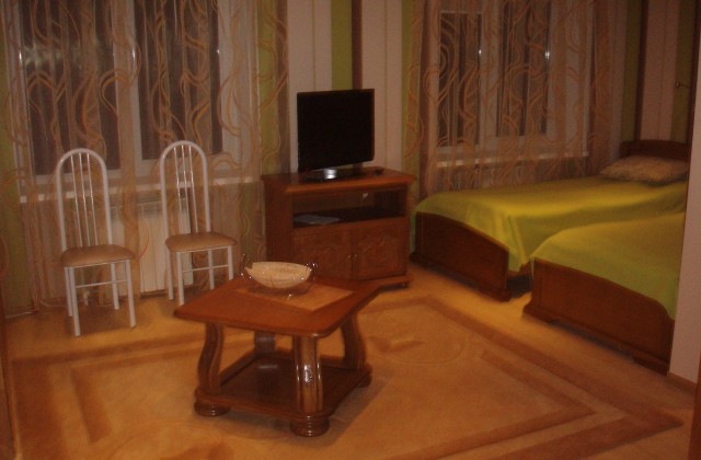 - Номер «Люкс» - одно-, двух- и трехместный. В номере есть: кровать, телевизор, холодильник, электрочайник, электроплита.