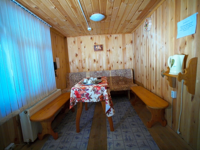 На даче есть: камин, СВЧ-печь, холодильник, электрический чайник, телефон, телевизор, DVD-плеер, караоке.