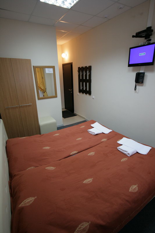 · В двухместных есть спутниковое ТВ, внутренний телефон, пуф, стол, шкаф, зеркало, двухспальная кровать, которую можно сделать двумя односпальными. Душ и санузел находятся в номере.