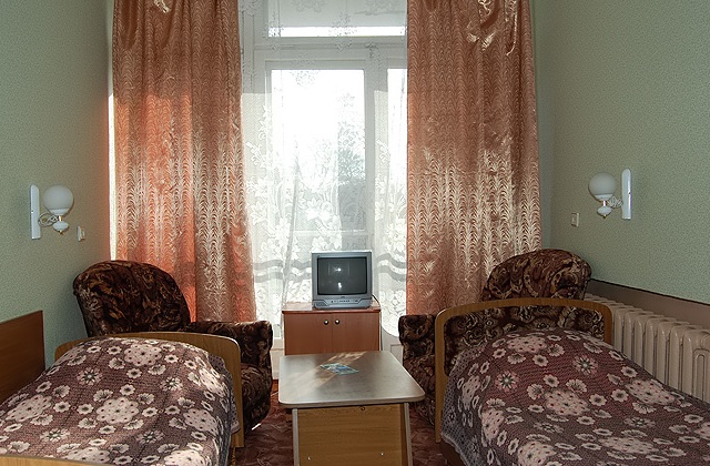 Стандартные номера (есть варианты с балконом) – двухместный (санузел (в номере или на этаже), душ, телевизор, две кровати, два кресла, встроенный или обычный шкаф).