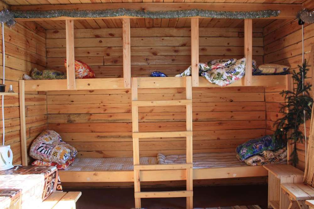 - Шестиместный дом эконом-класса отапливаемый дровами в холодное время года оснащен прихожей, обеденно-кухонной зоной, в которой есть электрическая плита, электрический чайник, посуда. Удобства расположены на территории базы, недалеко от домика. Во дворе дома есть специальная зона с мангалом, скамейками и навесом, каменным очагом, качелями.